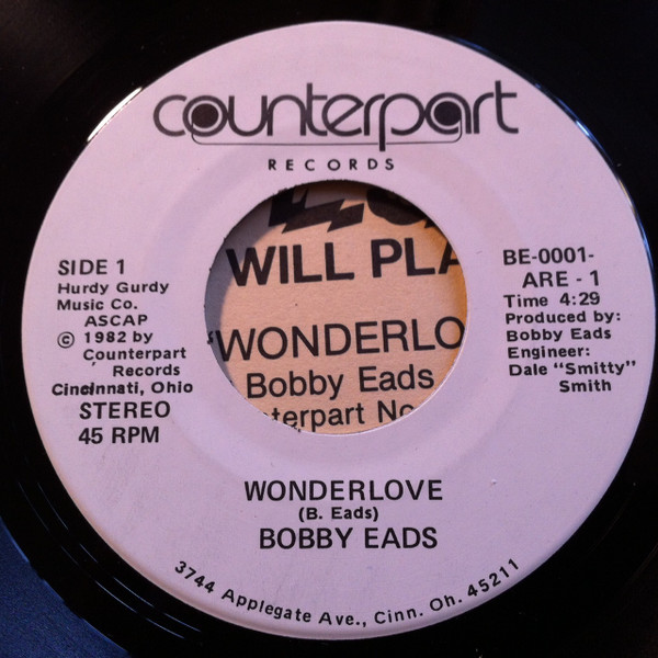 Bobby Eads – Wonderlove (7")Not for sale on DiscogsDisable searchEdit search queryCancelOne item foundHide AllBOBBY EADS 45 Wonderlove - Counterpart NM- RockEnding Sunday, Jan 31 12:55€6.96