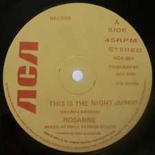 Rosanne – This Is The Night (12")Not for sale on DiscogsDisable searchEdit search queryCancelOne item foundHide AllRosanne / Dallas Crew - This Is The Night / The Theme From Dallas (12")Ending Saturday, Mar 06 08:55€35.52